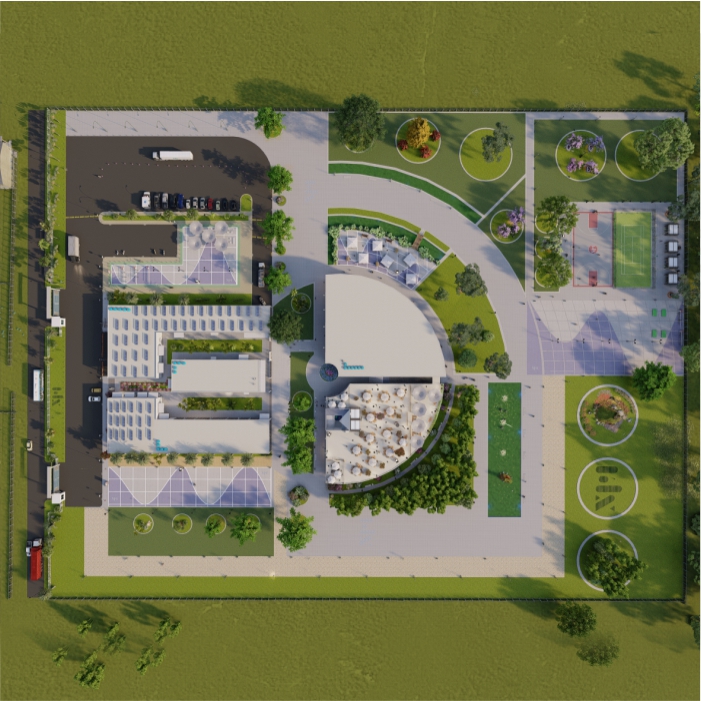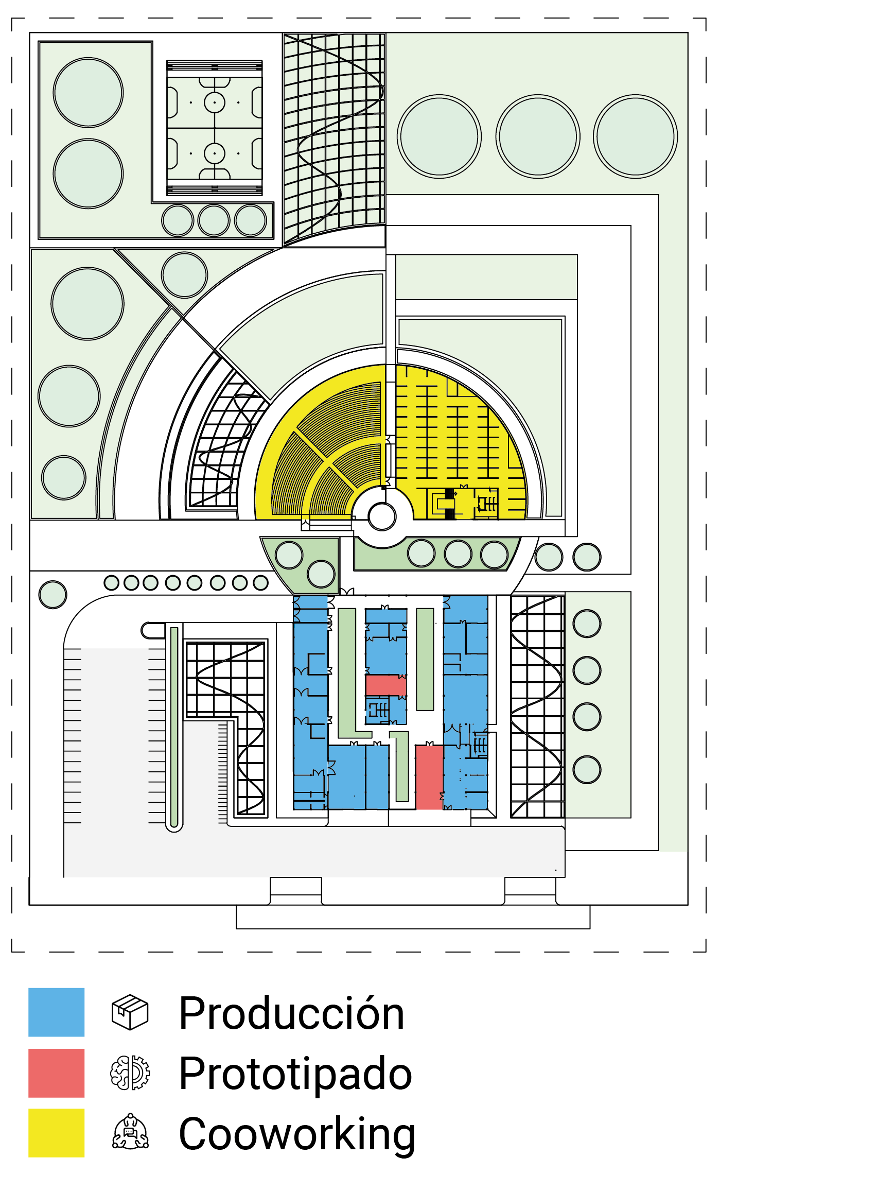 El complejo cuenta áreas de producción de piezas plásticas y ensamblaje electrónico, áreas de empaque, acondicionamiento y esterilización, áreas de almacenaje.