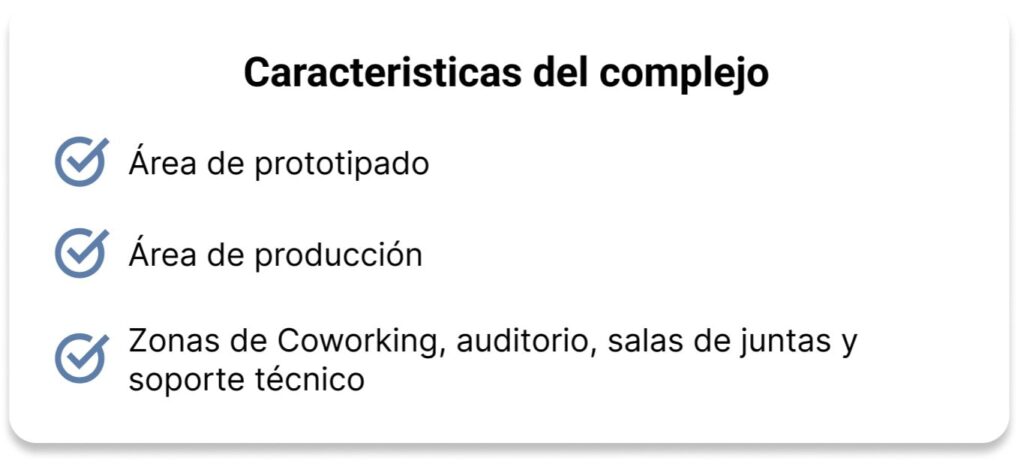El complejo cuenta con ecosistema de prototipado de productos que contengan piezas plásticas y electrónicas, apoyados con sistemas de impresión 3D, fresado y corte.